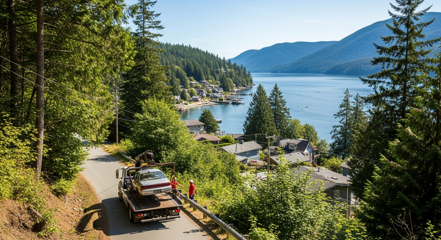 Access to Belcarra requires navigating the narrow roads through Anmore and the Port Moody side. Our drivers know the route and arrive prepared for the terrain. We bring appropriate equipment for the tight turnarounds and coastal property layouts common in the area.